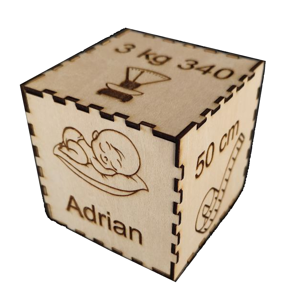 Cube de naissance en bois avec texte de votre choix. Les faces en bois mesurent 8,8cm de côté