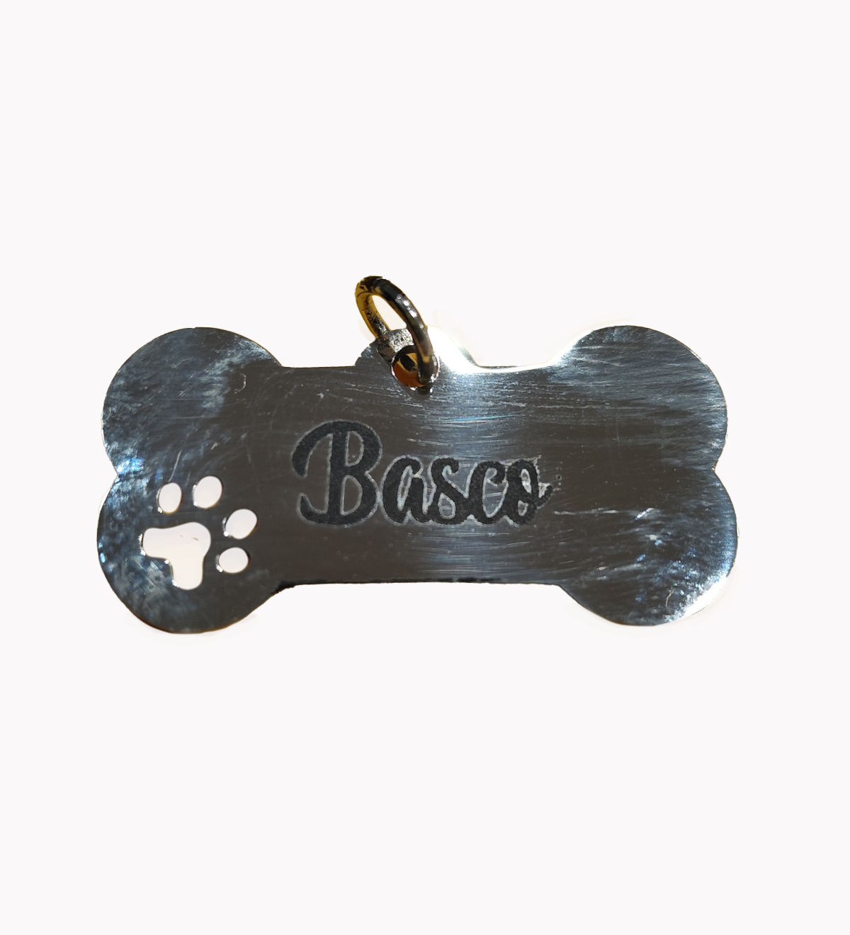 Une médaille en métal pour identifier votre animal, avec deux numéros de téléphone gravés au dos de la médaille.