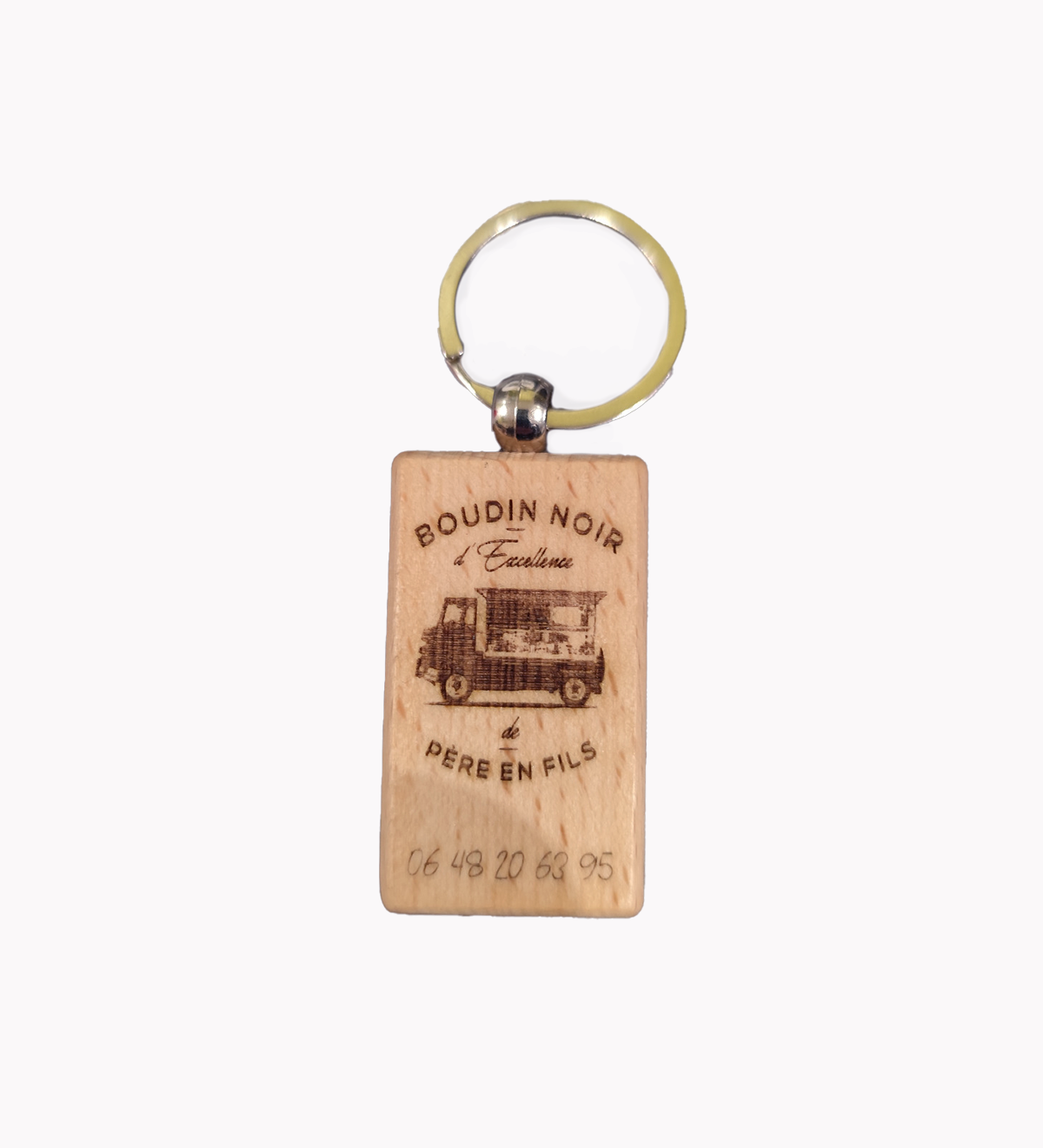 Porte clés en bois avec gravure image et texte. Profitez de prix dégressifs pour la commande de plus gros volumes !